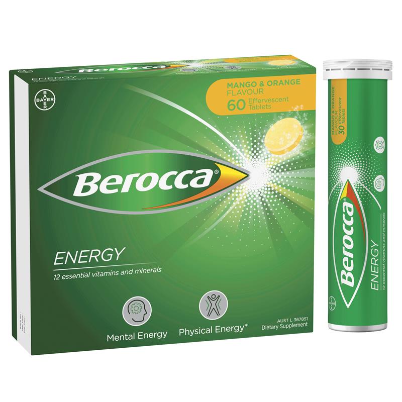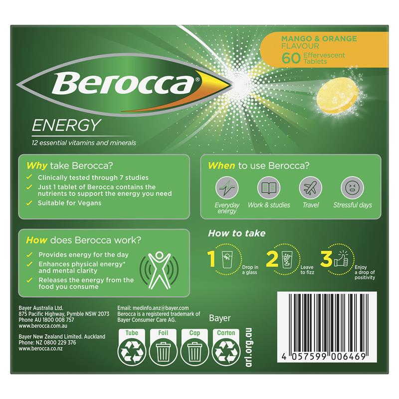 Berocca Energy Mango And Orange 60 Effervescent Tablets Exclusive Size