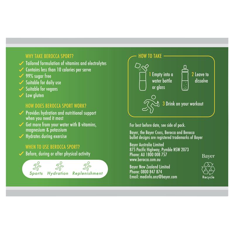 Berocca Sport is a formulated supplementary sports food to be consumed in conjunction with a nutritious diet and appropriate physical training or exercise program. Not a sole source of nutrition.