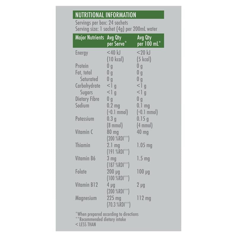 Adults and children 15 years and over, 1 powder sachet dissolved in 200mL of water. Take daily or as directed. Not a sole source of nutrition and should only be consumed in conjunction with a nutritious diet and appropriate physical training or exercise program.STORAGE INSTRUCTIONS