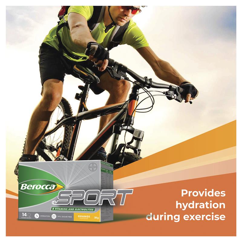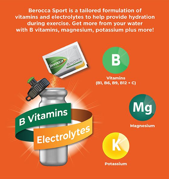 Berocca Sport is a tailored formulation of vitamins and electrolytes to help provide hydration during exercise.