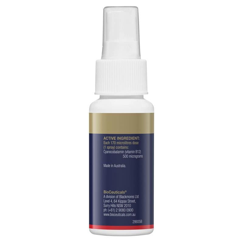 Each 170 microlitre dose (1 spray) contains: Cyanocobalamin (vitamin B12) 500 micrograms