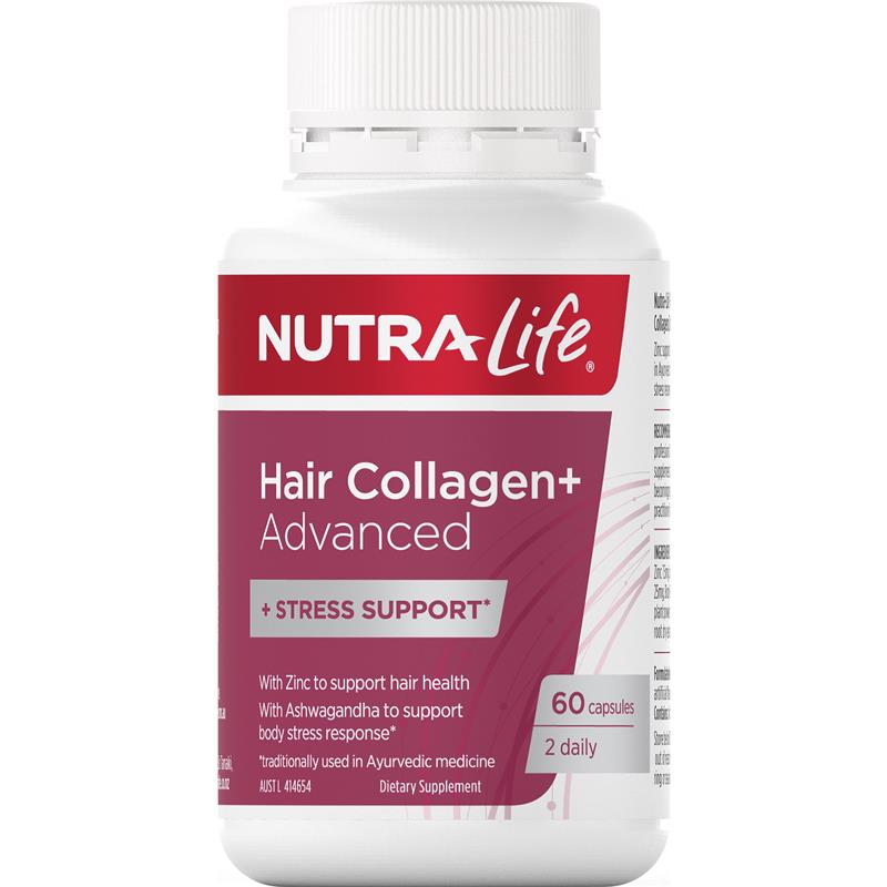 Nutra-Life® Hair Collagen+ Advanced contains a combination of Hydrolysed collagen, Zinc, Vitamin C, Inositol, Biotin, Silicon & Kelp with Ashwagandha. Zinc supports hair health, thickness & growth. Ashwagandha is traditionally used in Ayurvedic Medicine to help the body adapt to stress & support healthy body stress recovery.Suitable For: Adults