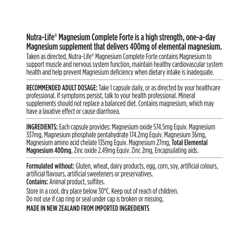 Nutra-Life® Magnesium Complete Forte is a high strength, one-a-day Magnesium supplement that delivers 400mg of elemental magnesium.