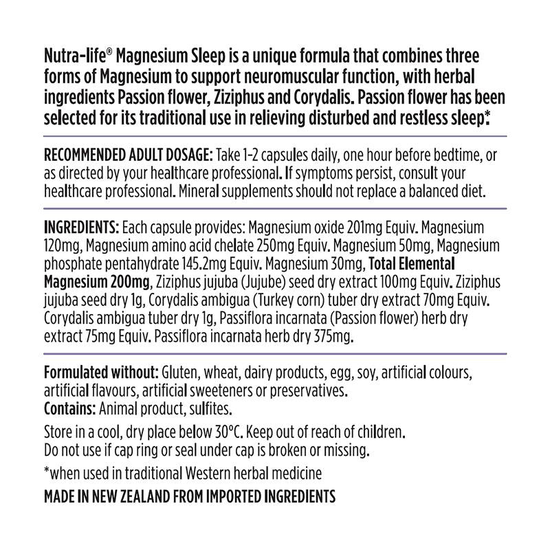 Nutra-life Magnesium Sleep is a unique formula that combines three forms of Magnesium to support neuromuscular function, with herbal ingredients Passion flower, Ziziphus and Corydalis. Passion flower has been selected for its traditional use in Western herbal medicine to induce and relieve disturbed / restless sleep.