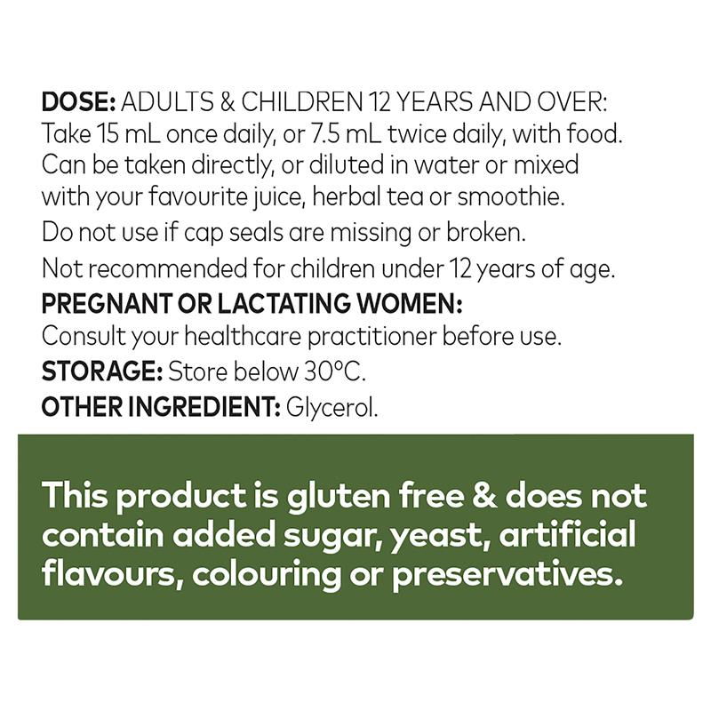 NGƯỜI LỚN VÀ TRẺ EM TỪ 12 TUỔI TRỞ LÊN: Uống 15 mL một lần mỗi ngày hoặc 7,5 mL hai lần mỗi ngày cùng với thức ăn. Có thể uống trực tiếp hoặc pha loãng với nước hoặc trộn với nước ép, trà thảo mộc hoặc sinh tố yêu thích của bạn.