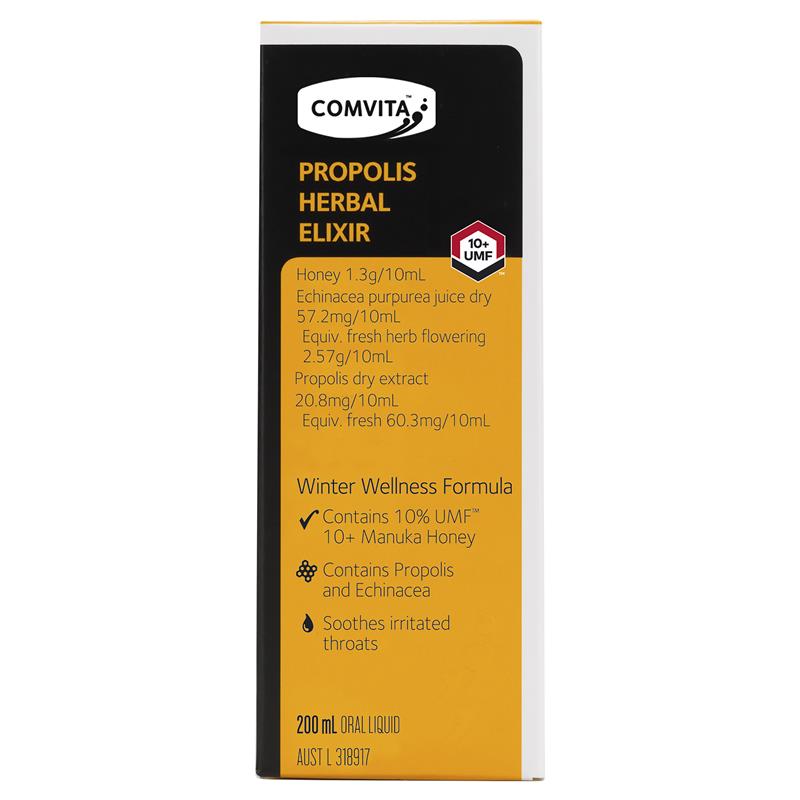 Thuốc thảo dược keo ong Comvita được bào chế từ các thành phần hoạt tính tự nhiên, được thiết kế để hỗ trợ sức khỏe vào mùa đông.Mật ong Manuka của New Zealand từ lâu đã được đánh giá cao vì những đặc tính độc đáo và được sử dụng để làm giảm ho ở trẻ em, và theo truyền thống trong y học tự nhiên như một loại thuốc làm dịu cổ họng.