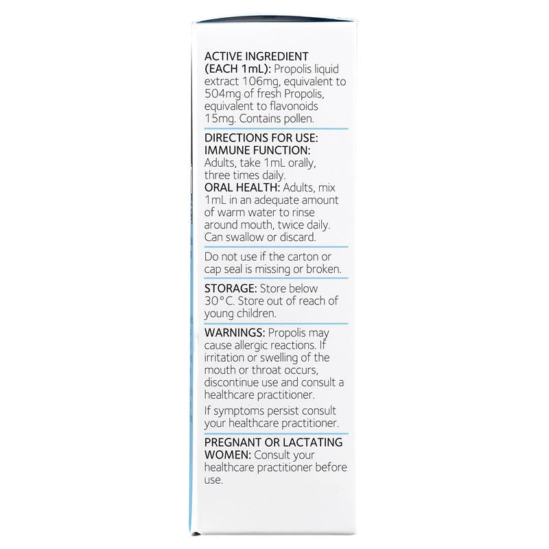 CẢNH BÁO: Keo ong có thể gây ra phản ứng dị ứng. Nếu bị kích ứng hoặc sưng miệng hoặc cổ họng, hãy ngừng sử dụng và tham khảo ý kiến bác sĩ chăm sóc sức khỏe. Có chứa keo ong. PHỤ NỮ CÓ THAI HOẶC CHO CON BÚ: Tham khảo ý kiến bác sĩ chăm sóc sức khỏe trước khi sử dụng.