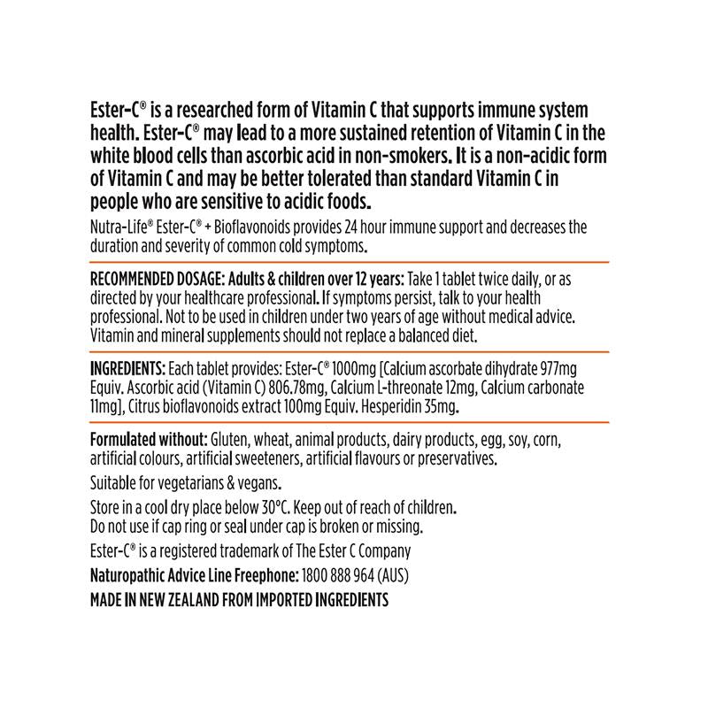 Nutra-Life® Ester-C® + Bioflavonoids hỗ trợ miễn dịch 24 giờ và giảm thời gian cũng như mức độ nghiêm trọng của các triệu chứng cảm lạnh thông thường.