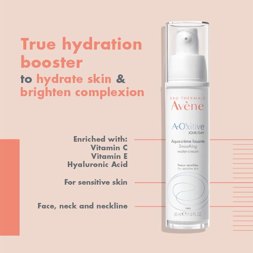 Avène A-Oxitive Smoothing Water-cream 有助于抵抗日常侵害(数字屏幕的蓝光、污染、自由基、压力)的有害影响,并通过关键成分的独特组合保持年轻肌肤。