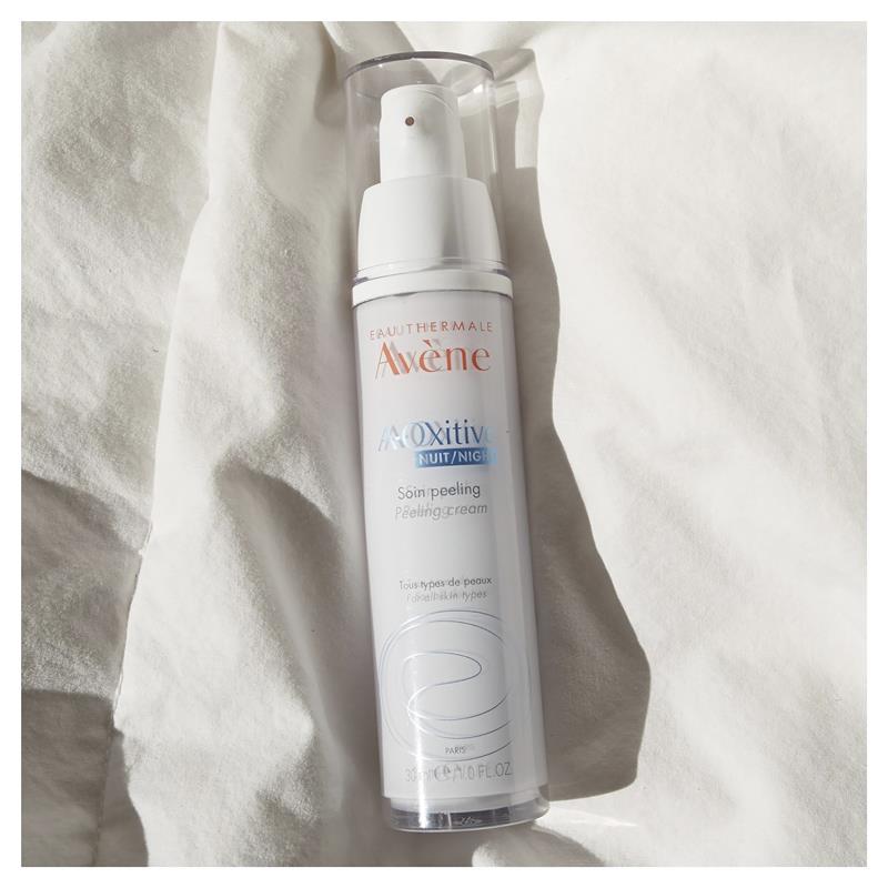 Avène A-Oxitive 夜间去角质霜整夜发挥作用,促进细胞活动、排毒、均匀肤色,通过夜间更新活性成分复合物保持年轻肌肤。