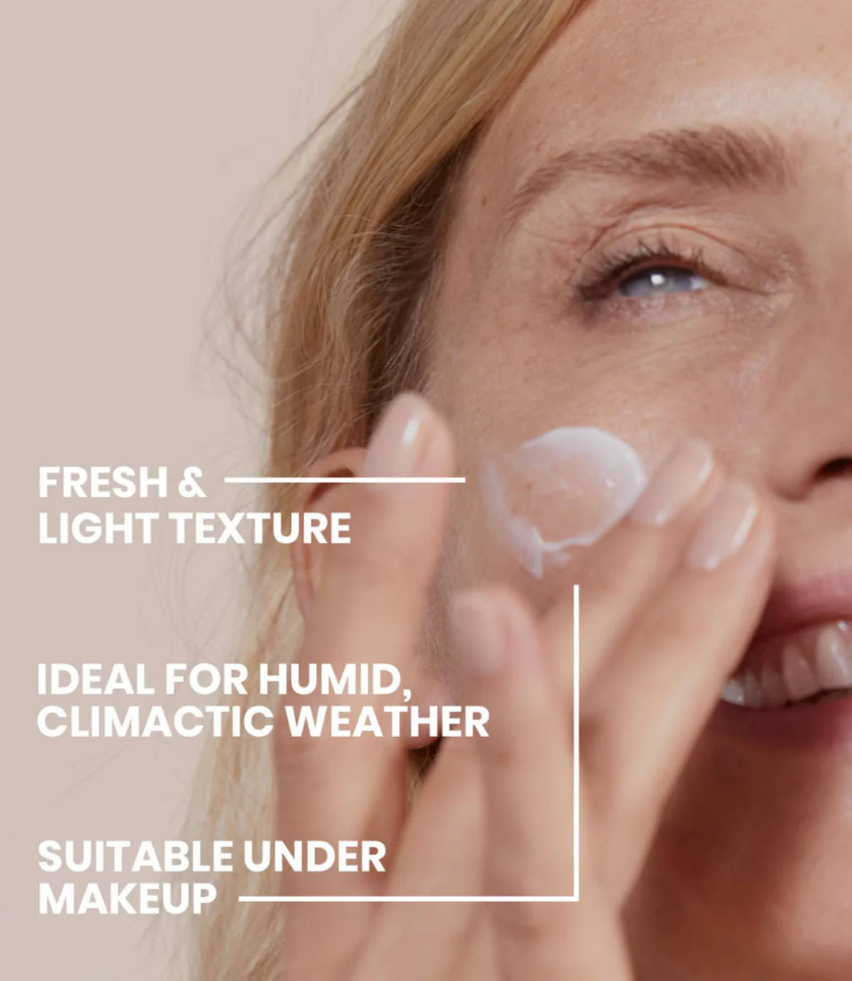 这款面霜质地清新轻盈,是潮湿气候的理想之选。它易于快速吸收,不会留下油腻或黏腻的薄膜,适合所有肤质,也适用于妆前乳。雅漾活泉水是这款面霜的关键成分,令肌肤全天倍感舒缓、舒适和柔嫩。