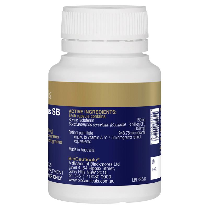 布拉氏酵母菌 (SB) 有助于维持健康的消化系统功能,维持有益的肠道菌群,并缓解腹泻。SB 可以缓解痤疮症状,并有助于维持身体黏膜健康。维生素 A 和 SB 有助于维持健康的免疫系统功能。适用对象:仅限成人或遵医嘱。