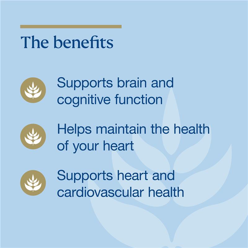 Omega-3 脂肪酸有助于支持大脑和认知功能,维持心血管系统健康,并维持健康的情绪平衡。它们还具有抗炎作用,可以缓解轻度骨关节炎的症状,促进健康的关节功能,并缓解轻度关节疼痛。