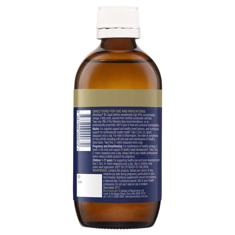 UltraClean® 85 液体富含 85% 浓度的 Omega-3 脂肪酸,源自经认证的可持续野生鱼类。这款鱼油产品符合英国环境与健康组织 (GOED) 的新鲜度质量标准。Omega-3 脂肪酸有助于维持大脑和认知功能,帮助维持心血管系统健康,并有助于保持健康的情绪平衡。它们还具有抗炎作用,可以缓解轻度骨关节炎症状,促进健康的关节功能,并缓解轻度关节疼痛。适合对象:仅限成人和1岁以上的儿童。