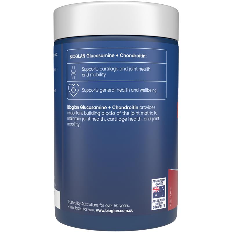 Bioglan 葡萄糖胺 + 软骨素提供关节基质的重要组成部分,以维持关节健康、软骨健康和关节活动性。