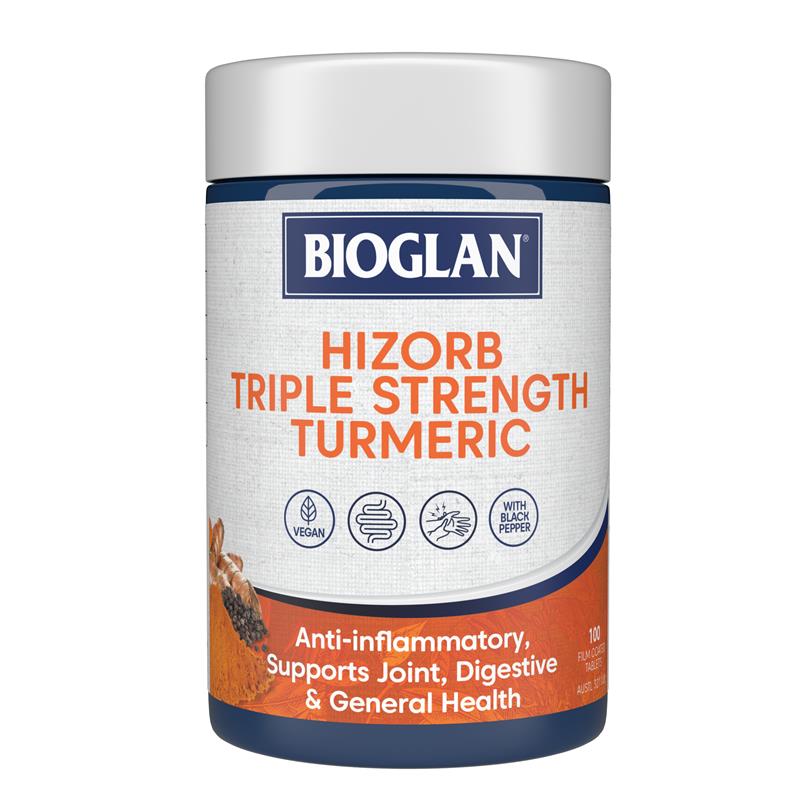 Bioglan 的 Hi-Zorb 三重强度姜黄将姜黄的抗炎功效与黑胡椒提取物相结合,以增强体内的吸收。