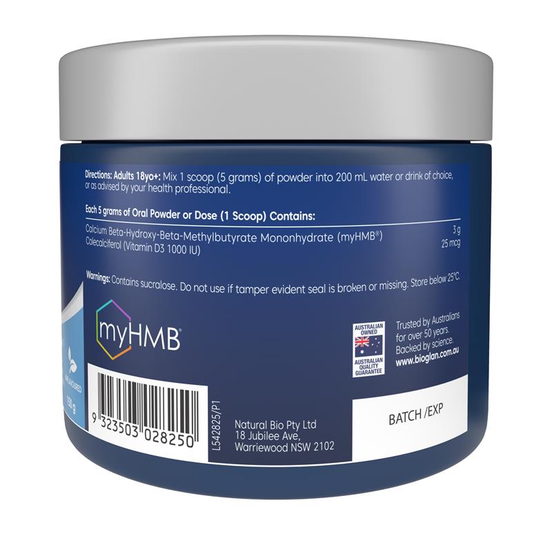 Bioglan 肌肉保护 HMB + D3 粉 每 1 勺提供 3 克 myHMB® 和 1000IU 维生素 D3 以维持肌肉质量。