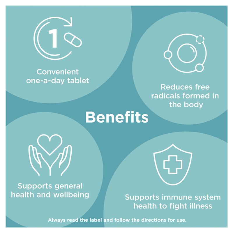 高效每日一片配方,可减轻普通感冒和流感症状的严重程度和持续时间。维生素C