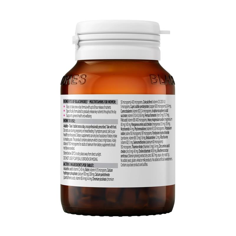 Blackmores® 女士缓释复合维生素,是专为女性定制的必需维生素和矿物质混合物。其配方旨在支持免疫系统功能和能量生成。这款便捷的每日一片复合维生素,有助于促进胶原蛋白生成和皮肤健康,并采用独特的缓释技术,可在一天中逐渐向身体释放营养。Blackmores® 女士复合维生素采用缓释技术,可稳定释放营养,为您每天提供长达 8 小时的持久能量。