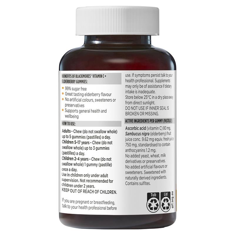 使用 Blackmores 维生素 C + 接骨木果软糖缓解普通感冒症状。这款美味的接骨木果软糖能为您的身体提供每日所需的维生素 C。