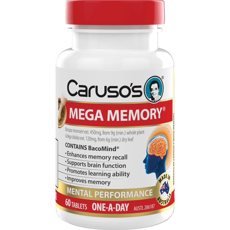 Caruso's Mega Memory 是一款草本补充剂,旨在增强记忆力,提升认知能力,每日一片,方便服用。Caruso's Mega Memory 有助于维持精神集中力、专注力、思维清晰度、学习能力和大脑功能。