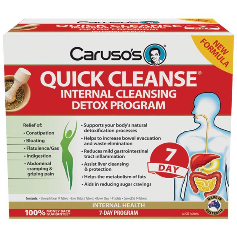 优质的Quick Cleanse内部清洁排毒方案包含4种草药和营养配方,它们结合在一起,有助于优化排毒过程;Stomach Clear有助于健康消化,Liver Detox有助于排毒并维持健康的肝功能。Bowel Clear有助于肠道废物的排出。Caruso's CraveLESS有助于脂肪代谢,并有助于减少对糖的渴望。