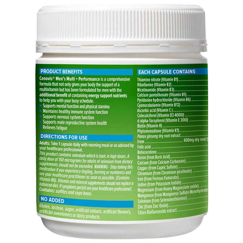 产品优势:Cenovis® 男士多种维生素 + 性能是一种综合配方,不仅为您的身体提供多种维生素的支持,而且还为男性配制,具有额外的好处,含有能量支持营养素,可帮助您应对繁忙的日程安排。
