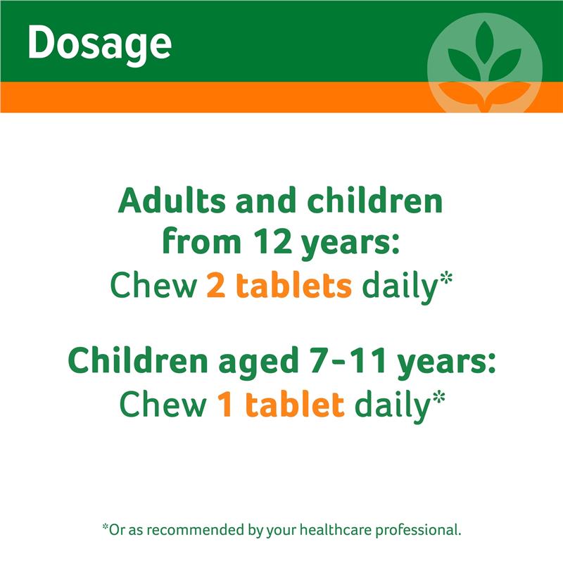 每天咀嚼 1 片或按照医疗保健专业人士的建议服用。