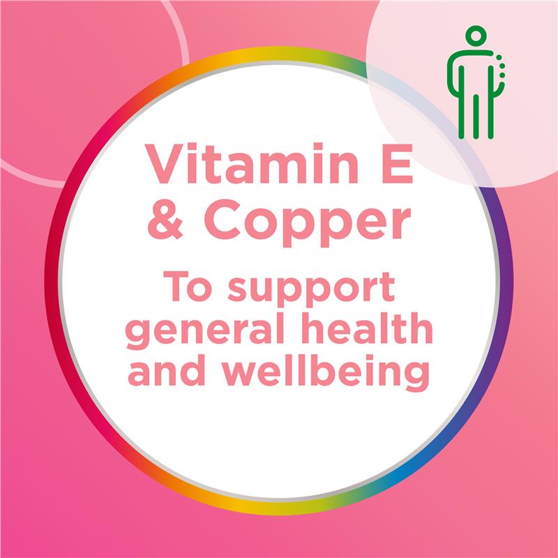 • 整体健康和福祉 - 维生素 E 和铜有助于维持整体健康和福祉