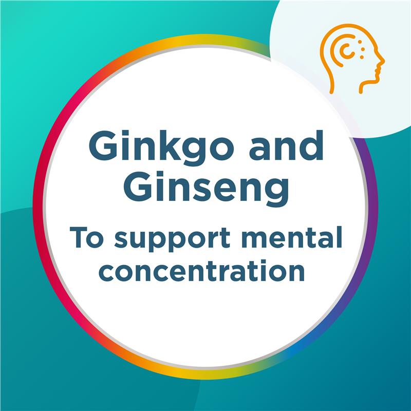 • 专注力和清晰度 - 银杏和人参有助于专注力和清晰度