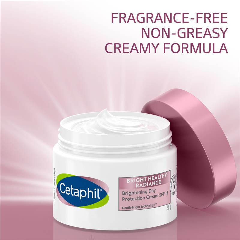 Cetaphil Bright Healthy Radiance 亮白日霜有助于提亮肤色,均匀肤色,不会刺激或削弱皮肤屏障。敏感肌肤瞬间得到滋润,展现内在光彩。日复一日,它致力于改善肤色均匀度,保护敏感肌肤免受阳光的伤害,帮助防止黑斑。仅 4 周后*,黑斑的强度和颜色就会得到有效减少,展现明亮、有光泽和均匀的肤色。采用 GentleBright 技术和保湿成分,旨在呵护最敏感的肌肤,因为它可以减少黑斑的出现,恢复均匀、有光泽的肌肤。白水仙花的天然提取物已被证明可以减少黑斑的强度和颜色,与亮白烟酰胺完美结合,均匀肤色。这种温和而高效的亮白、舒缓和保湿成分混合物可以保护最敏感的肌肤免受干燥,因为它可以增强皮肤的自然健康光泽。 *临床评分,41 名受试者产品声明:4 周内帮助减少肤色不均*