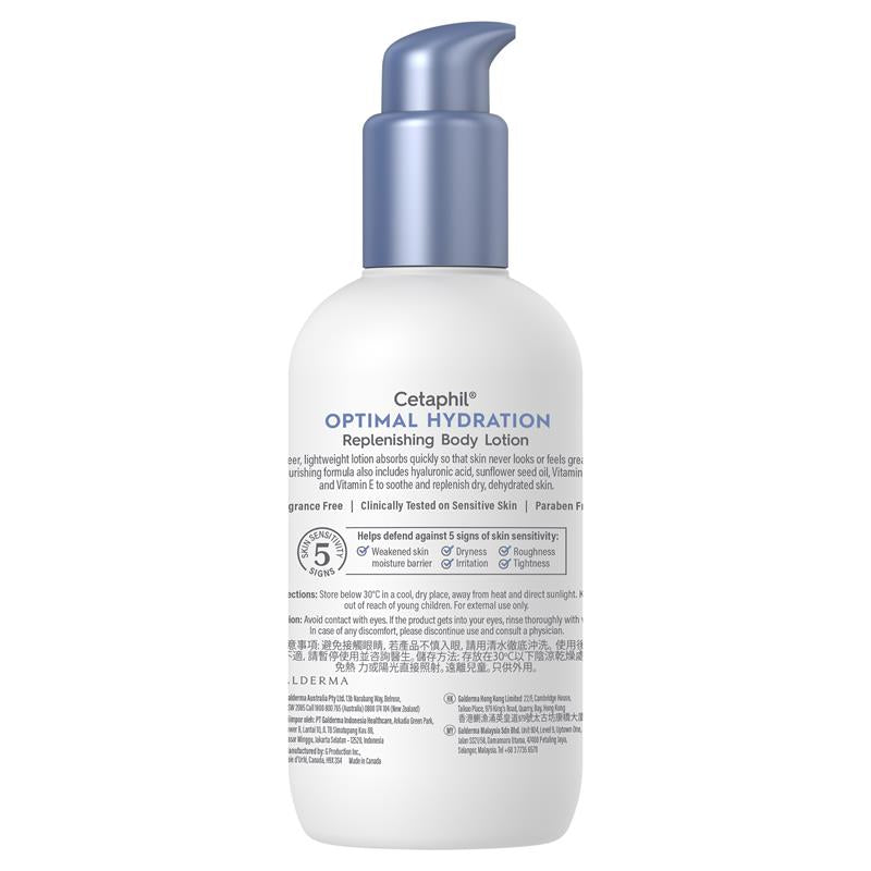 Cetaphil 极致保湿补水润肤乳可在 48 小时内强效补水,舒缓肌肤并补充其保护性保湿屏障。采用创新的 HydroSensitiv™ 复合物、透明质酸、葵花籽油、维生素原 B5 和维生素 E,其轻薄轻盈的配方可快速吸收,让您的肌肤感觉丝般光滑,不会油腻。这款轻盈的润肤乳经过敏感肌肤临床测试,不含对羟基苯甲酸酯和香料。适用范围:面部和身体。适合干性至极干性皮肤。