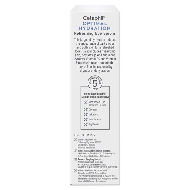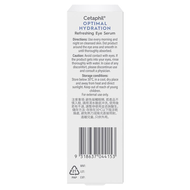 Cetaphil 极致保湿清爽眼部精华液有助于减少黑眼圈和眼部浮肿,让眼睛焕然一新。这款滋养、无香的眼部精华液含有透明质酸,经过眼科医生测试,质地温和,敏感肌肤也可以使用。