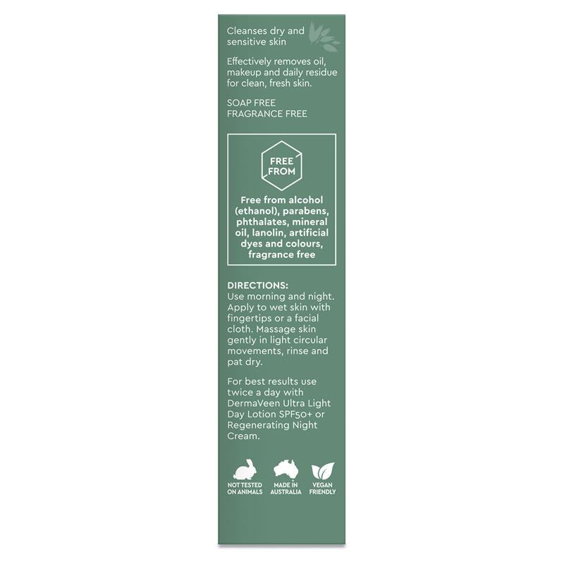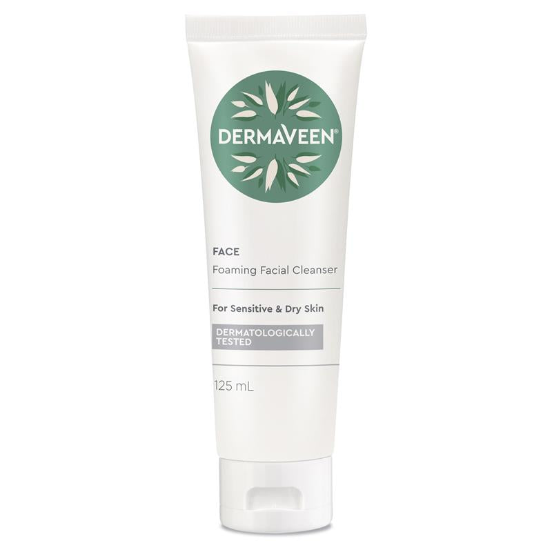 DermaVeen 干性及敏感性皮肤泡沫洁面乳具有低过敏性,不含对羟基苯甲酸酯和香料。