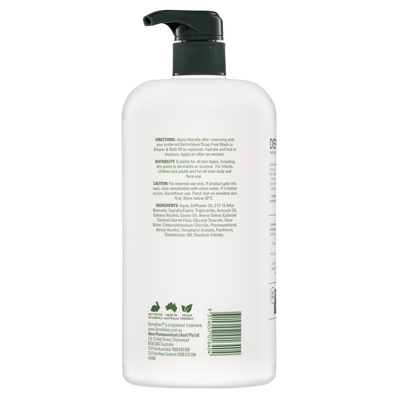 使用您喜欢的 DermaVeen 无皂洗面奶或沐浴油清洁后大量涂抹,以补充、保湿和锁住水分。根据需要经常涂抹。