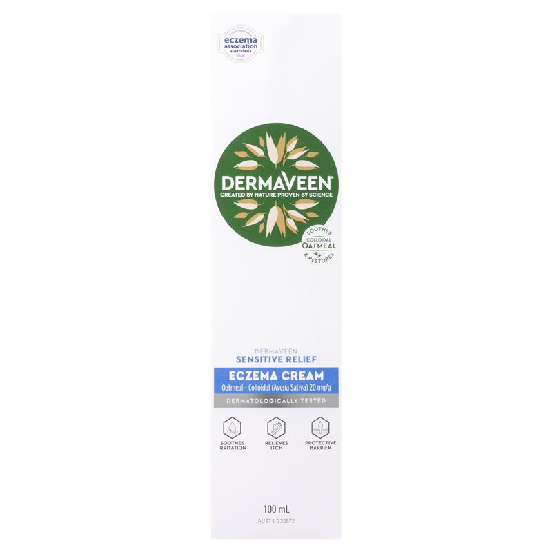 DermaVeen 敏感缓解湿疹霜可舒缓刺激、减轻瘙痒、形成保护屏障,并含有可舒缓和恢复皮肤的胶体燕麦。