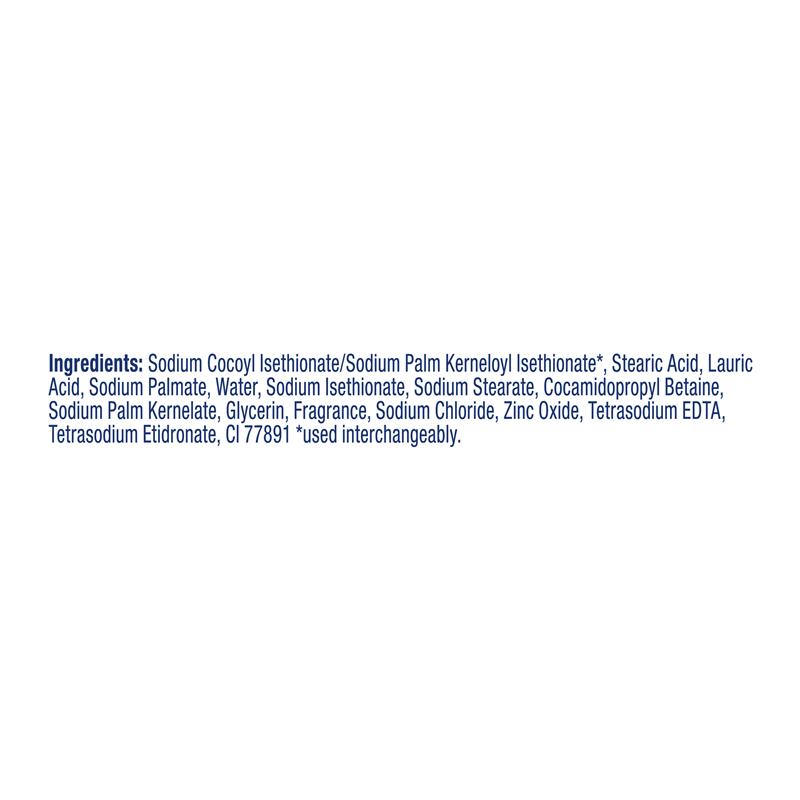活性成分:成分:椰油酰基羟乙基磺酸钠/棕榈仁酰羟乙基磺酸钠*、硬脂酸、月桂酸、棕榈酸钠、水、羟乙基磺酸钠、硬脂酸钠、椰油酰胺丙基甜菜碱、棕榈仁酸钠、甘油、香精、氯化钠、氧化锌、乙二胺四乙酸四钠、乙二膦酸四钠、CI 77891 *可互换使用。