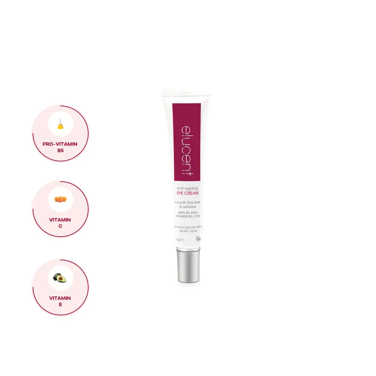 Elucent 抗衰老眼霜可温和抚平眼周细纹和皱纹。
