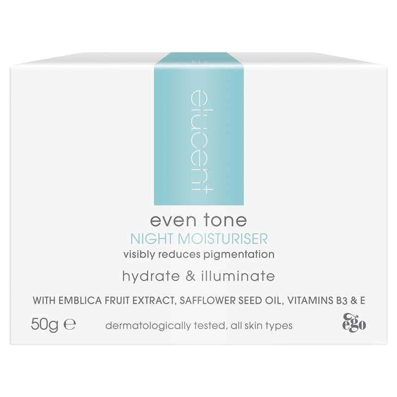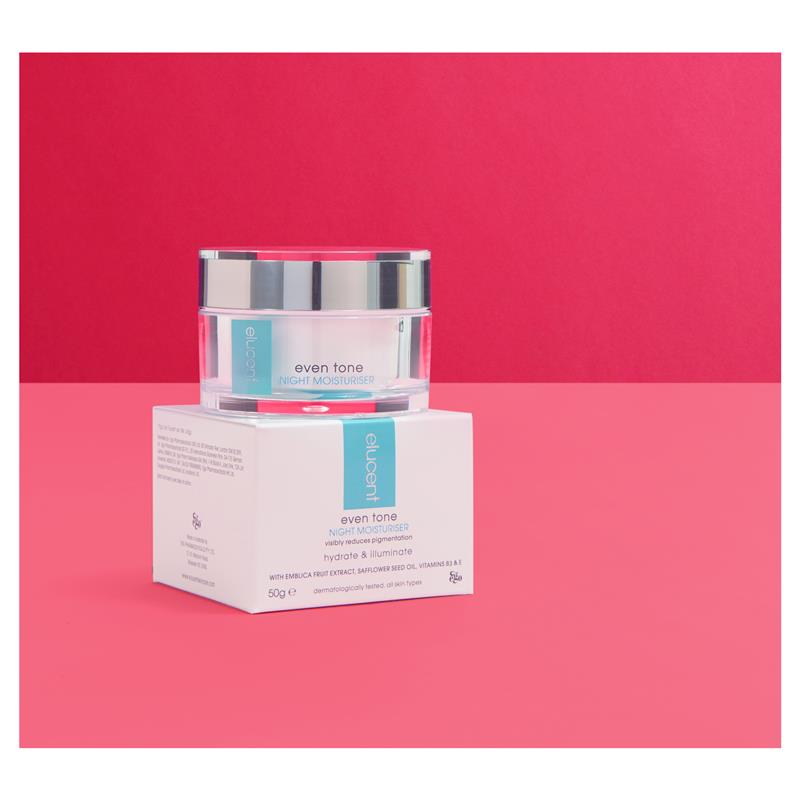 Elucent 均匀肤色晚霜中含有丰富的保湿成分,可补充皮肤全天流失的水分,使皮肤焕然一新,同时有助于减少黑斑的出现。