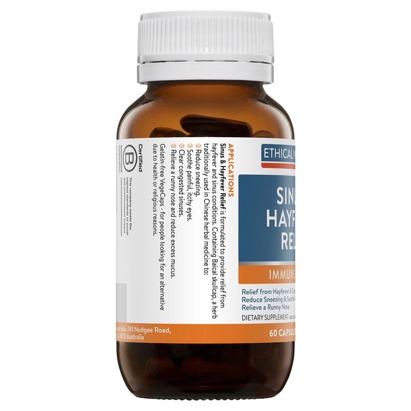 Ethical Nutrients Sinus & Hayfever Relief 含有治疗鼻窦炎和花粉热的草药,这些草药传统上在西方草药中用于缓解以下症状: