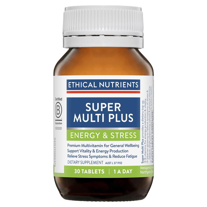 Ethical Nutrients Super Multi Plus 是一种优质复合维生素,有益于整体健康,可增强活力、能量产生和耐力,同时缓解疲劳和压力症状。