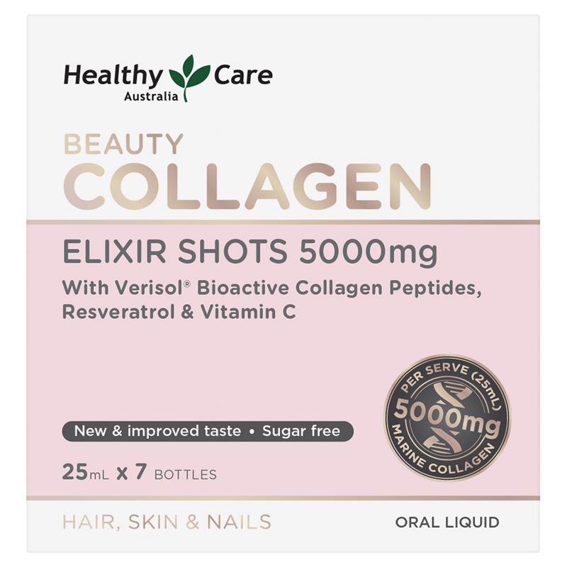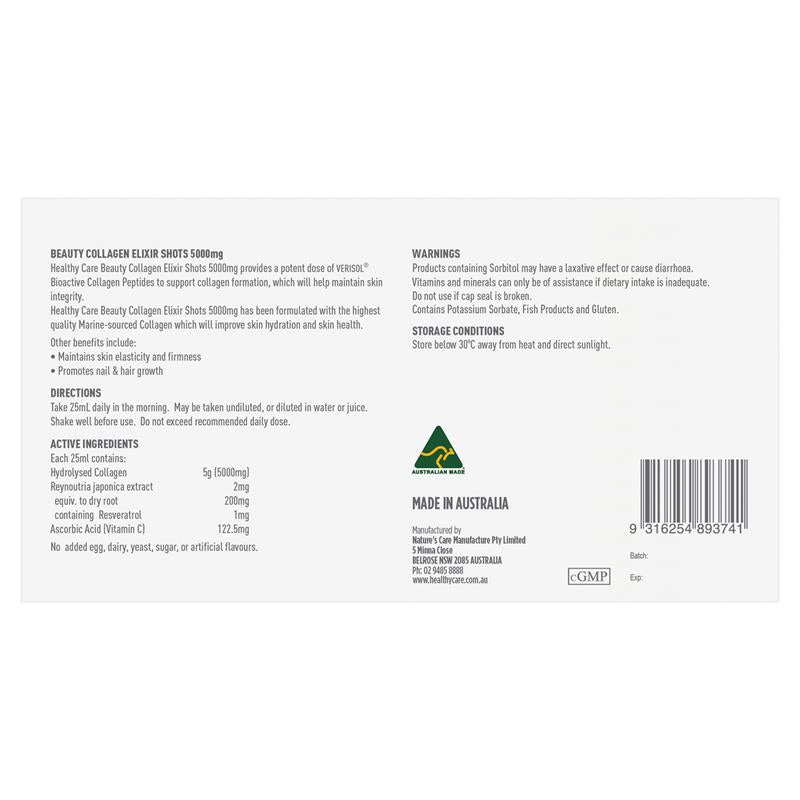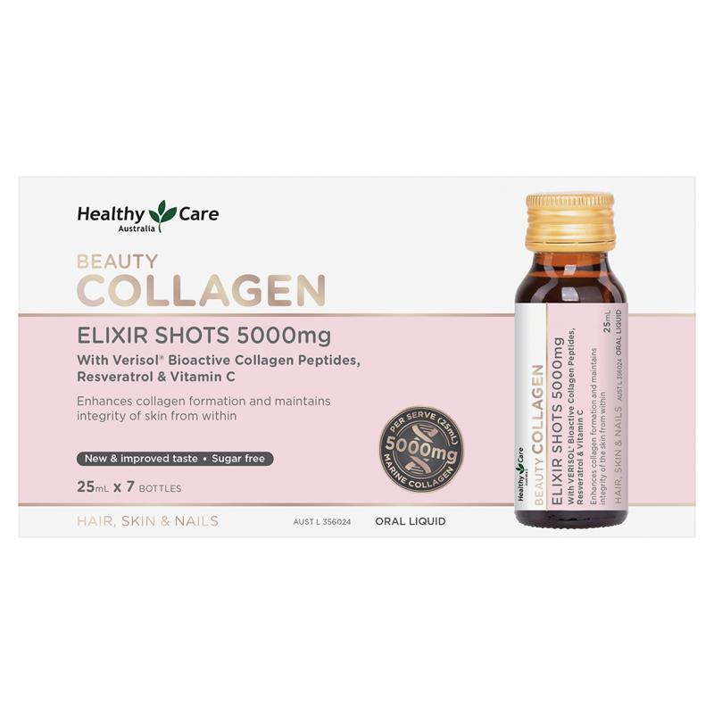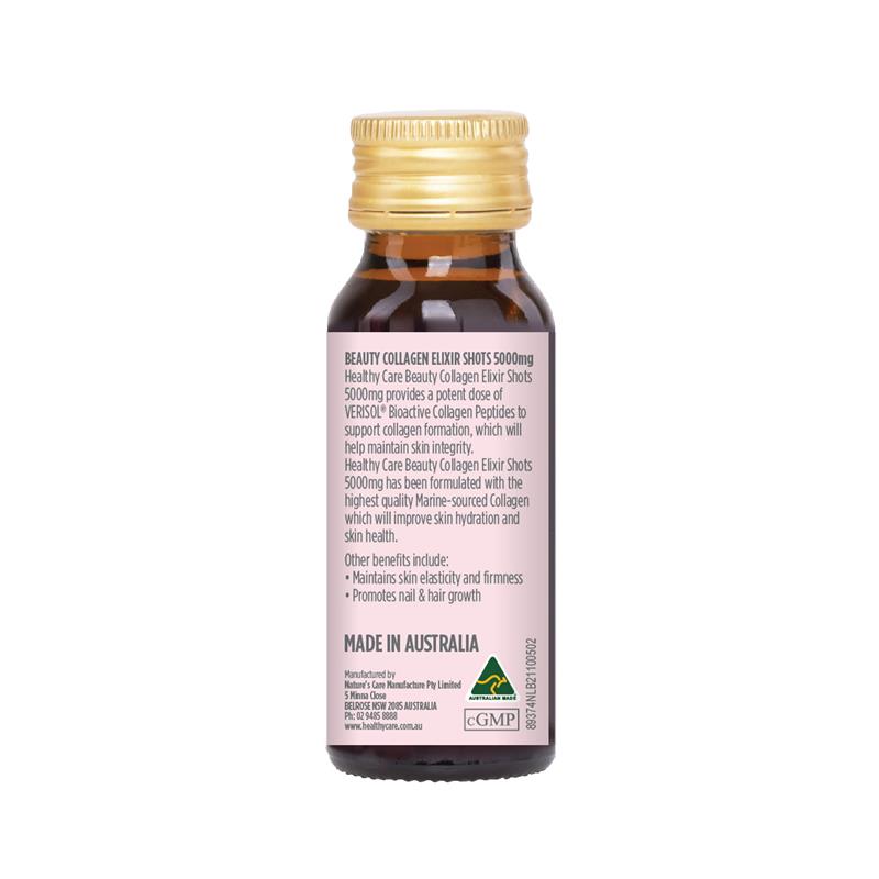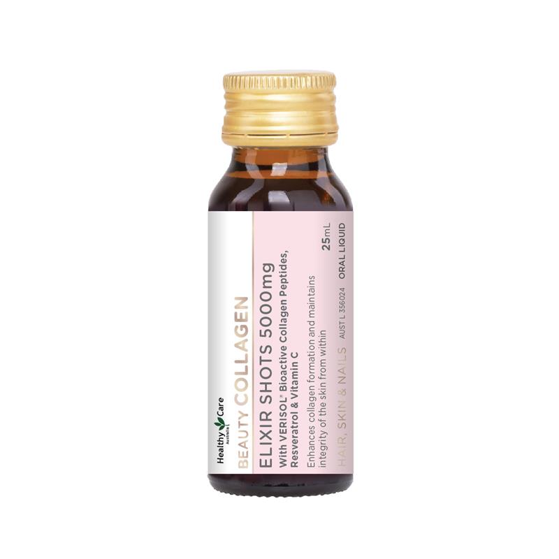 产品声明:Healthy Care Beauty Collagen Elixir Shots 5000mg 提供强效剂量的 VERISOL® 生物活性胶原蛋白肽来支持胶原蛋白的形成,这将有助于维持皮肤的完整性。