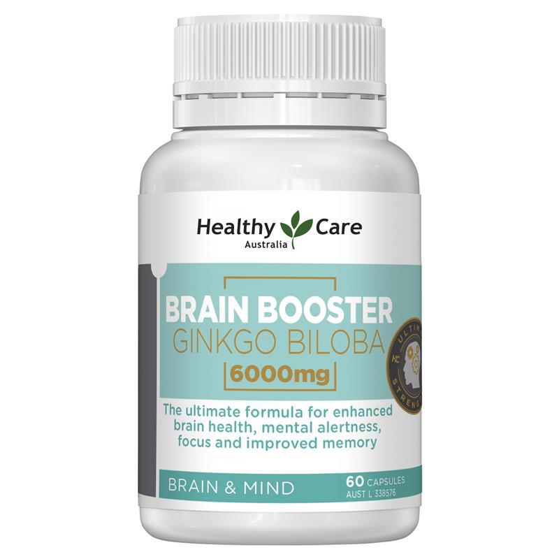 Healthy Care Brain Booster Ginkgo Biloba 6000mg - 增强大脑健康、精神警觉性、注意力和改善记忆力的终极配方。