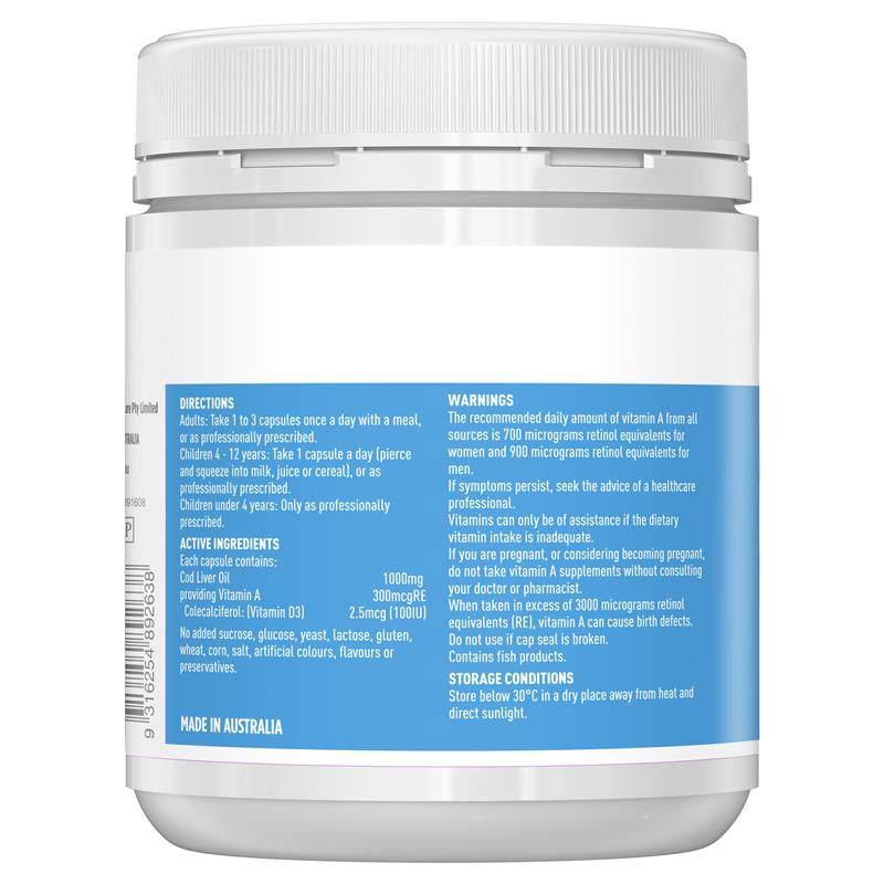 Healthy Care 鳕鱼肝油 1000mg 富含维生素 A、D 和 Omega-3 脂肪酸,有助于维持免疫系统、皮肤和骨骼健康。