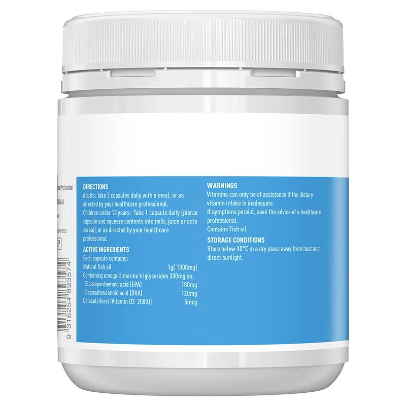 维生素仅在膳食维生素摄入不足时才有效。如果症状持续,请咨询医疗保健专业人士。本品含有鱼油。