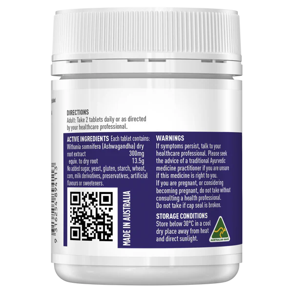 活性成分:每片含:印度醉茄 (Ashwagandha) 提取物,相当于干根 13.5 克 (13500 毫克)