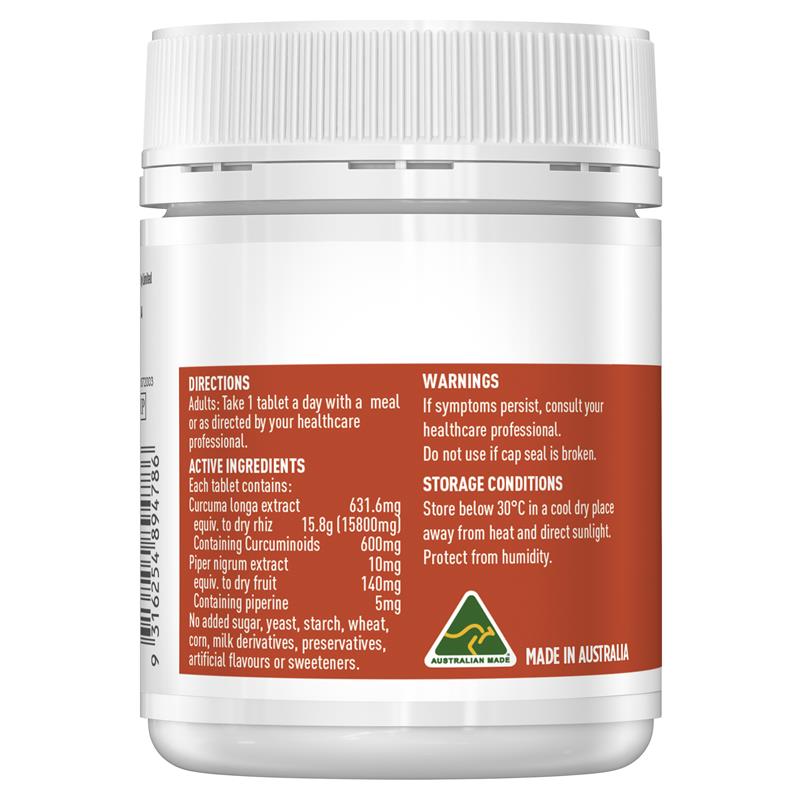 含姜黄素 600mg,黑胡椒提取物相当于干果 140mg,含胡椒碱 5mg,姜黄提取物 631.6mg 相当于干根 15.8g(15800mg),