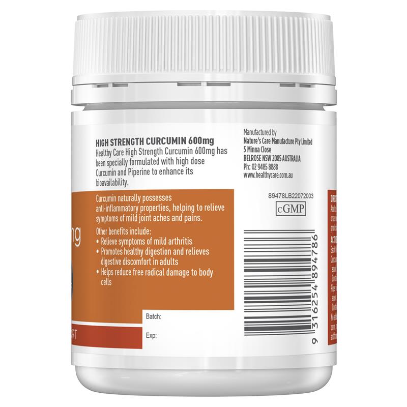 Healthy Care 高强度姜黄素 600 毫克,采用高剂量姜黄素和胡椒碱特殊配方,以提高其生物利用度。姜黄素具有天然抗炎特性,有助于缓解轻微关节疼痛。其他好处包括: