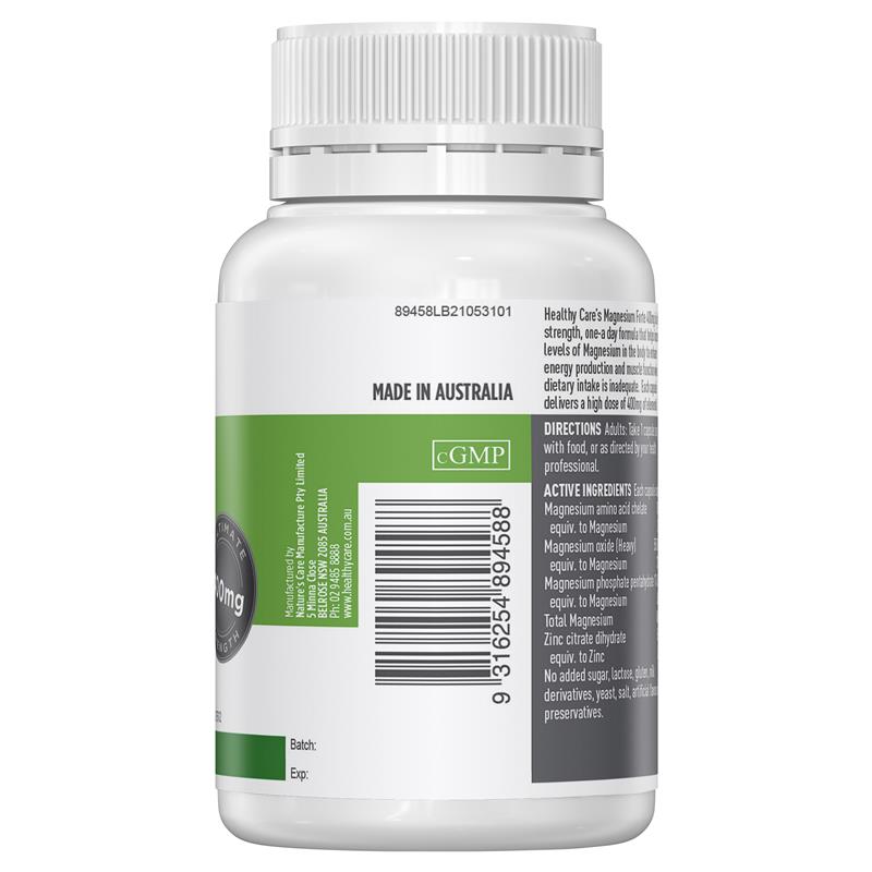 产品声明:Healthy Care 的 Magnesium Forte 400mg 是一种高强度、每日一次的配方,当饮食摄入不足时,它有助于提高体内的镁含量,从而增强能量产生和肌肉功能。