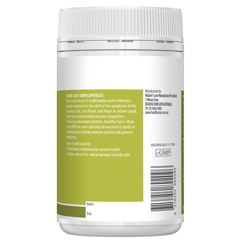 Healthy Care 橄榄叶 3000mg 传统上用于西方草药,以缓解普通感冒、流感、喉咙痛的症状,并有助于降低轻微发烧。